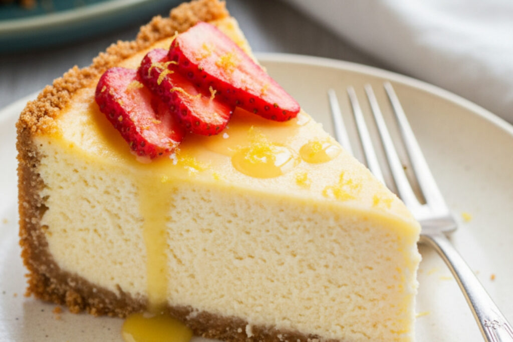 A classic, rich, and creamy New York-style cheesecake with a smooth texture and a hint of lemon.