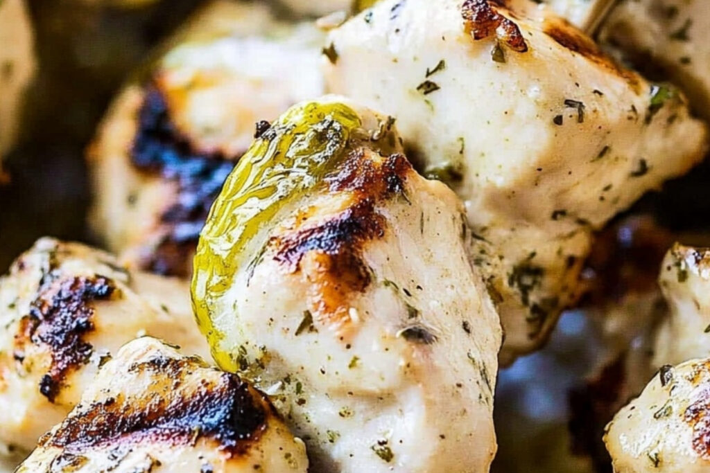 Experience the tangy and savory flavors of these Grilled Dill Pickle Chicken Skewers, featuring chicken marinated in pickle juice and grilled to perfection.