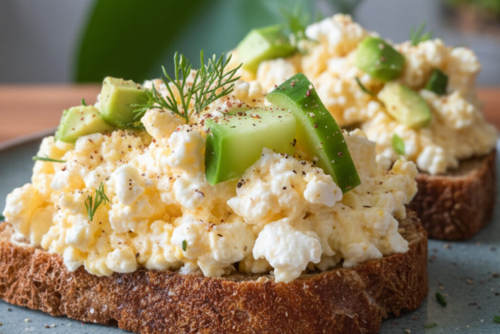Keywords:Egg Salad, Cottage Cheese, High Protein, No Mayo, Avocado Toast