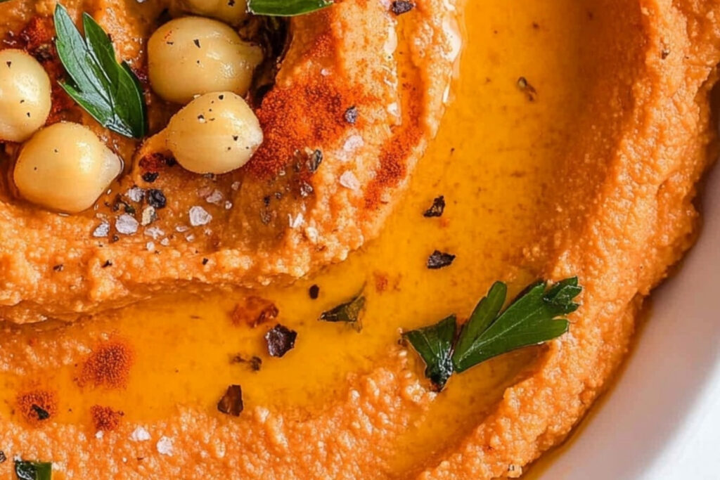 A creamy and flavorful dip with smoky roasted red peppers and protein-rich chickpeas, perfect for snacking or as an appetizer.